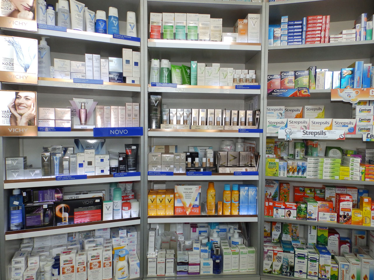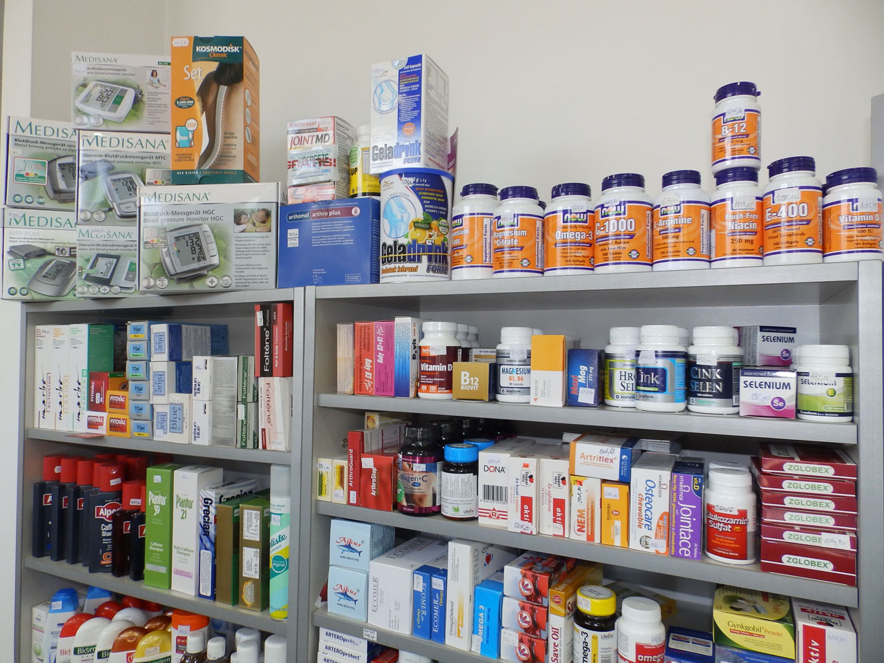Naše apoteke raspolažu: širokim asortimanom domaćih i uvoznih lekova, uključujući citostatike, raznovrsnim pomoćnim lekovitim sredstvima, kozmetičkim preparatima izrađenim u našoj laboratoriji, velikim izborom medicinske obuće, sa anatomskim uloškom, italijanske firme VAINER.