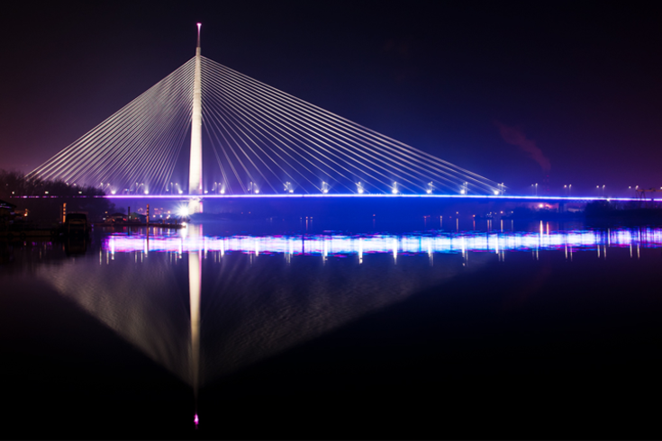 Po dužini kablova na koje je okačen, treći je u svetu, iza dva mosta u Rusiji. Dužina svih kablova okačenih o pilon iznosi oko 1000 km.