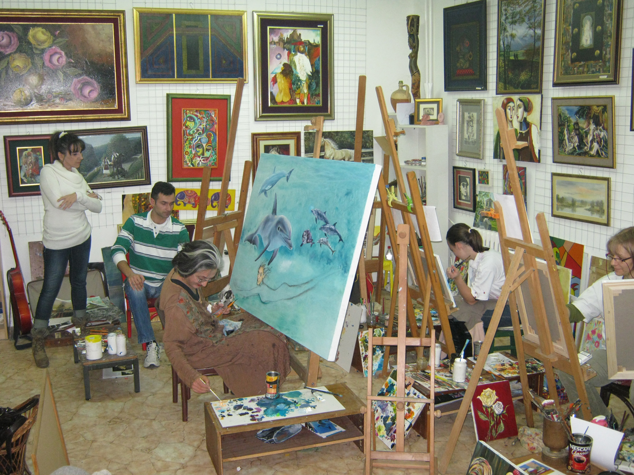 Learning to paint at Art As includes (classes are taught in Serbian, as well as in English):