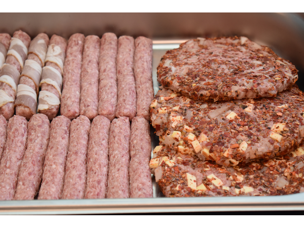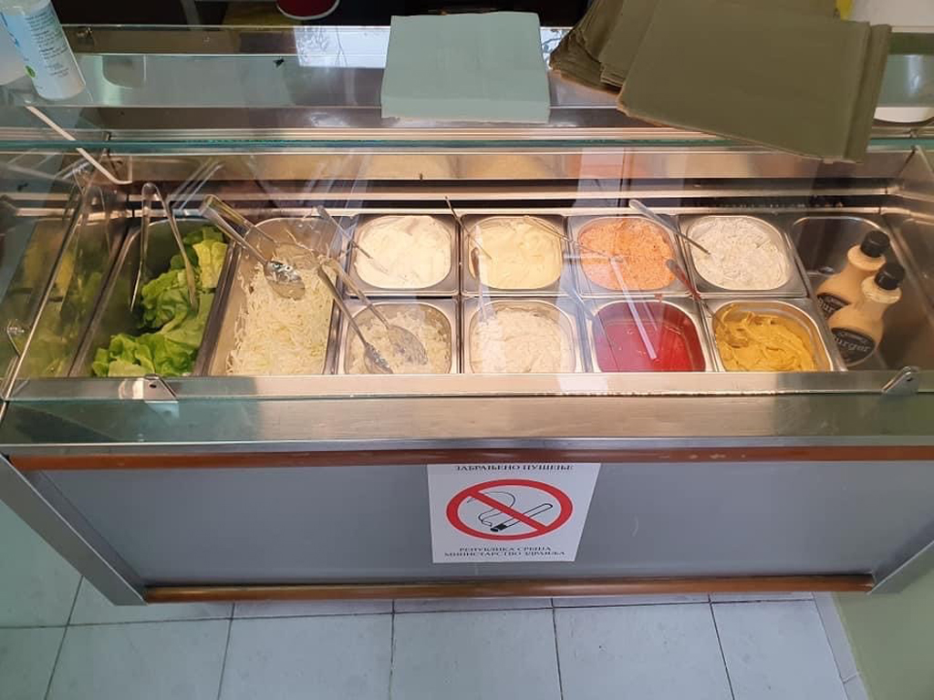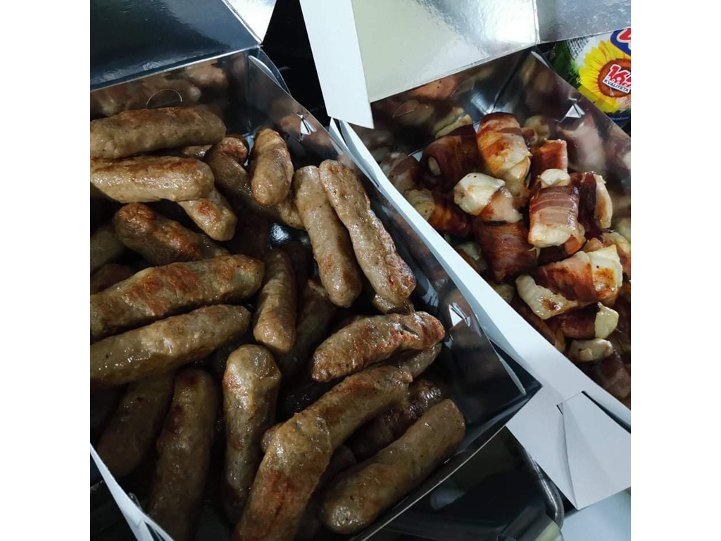 • Delivery and order number: 061/264-2-264   MENU Student’s patty 120gr 120din Patty 200gr 200din Leskovac patty 200gr (onions, spicy ground pepper) 210din Sesame patty 210gr 220din Stuffed patty 320gr (ham, cheese, mushrooms) 300din Stuffed patty in sesame 320gr (sesame, ham, cheese, mushrooms) 310din Gourmet patty 320gr (bacon, ham, cheese, spicy pepper) 290din Cevaps 5 pcs 200gr 220din Rolled cevaps 5 pcs  250gr (bacon) 300din Skewer cevap 200gr 200din Fritters 5 pcs 350gr (bacon, onions, ground spicy pepper, pepper) 330din Sausage homemade smoked 200gr 250din Chicken breast 200gr 240din Rolled Chicken breast 250gr (bacon) 300din Chicken breast in sesame 210gr 250din Stuffed Chicken breast 230gr (ham, cheese, mushrooms) 300din Breaded Chicken breast 200gr 250din...