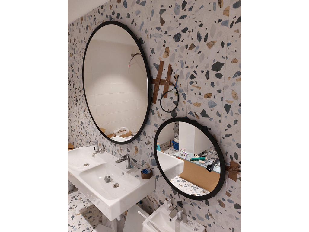 Mirrors of all sizes and purposes, as well as wall cladding with tinted glass in colors selected by the client according to the RAL color chart