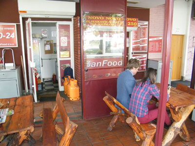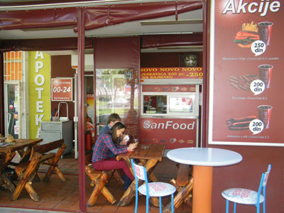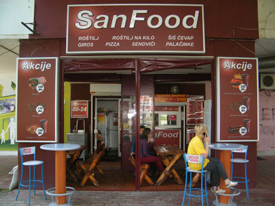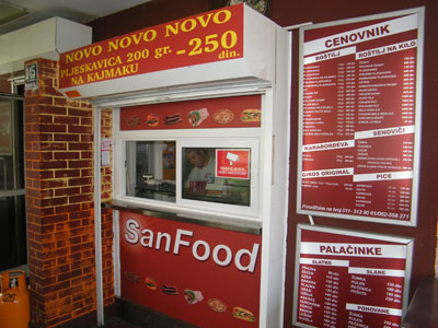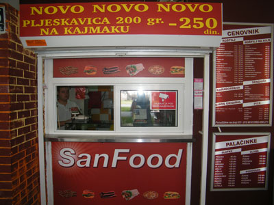 SALE - SALE - SALEChicken gyros + pepsi 250dinShish kebab + coca cola 200dinBurger + fries + Coca Cola 250dinCapricioza 18cm + coca cola 150dinGrill San Food is a family business with a long tradition. We started working a few years ago, when we opened this our and your favorite barbecue San Food in Mihailo Pupin Boulevard 145 (across from YU Business Center) in New Belgrade. Grill is different from the other primarily by the quality of the meat, and then by way of preparing meat for barbecue. For making sausage and ground for burgers using top quality meat from the best producers.Our meat does not contain any additives or artificial additives, so you can eat and children. Get the procedure of preparing meat lasts a few days, as this recipe requires is more than 80 years. Once you try one...