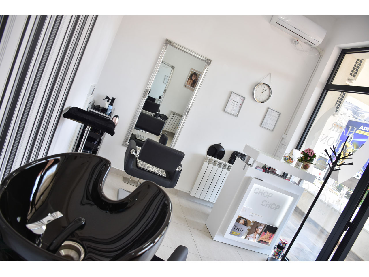 At our newly opened unisex hairstyling salon CHOP-CHOP we offer various different services in the domain of coloring, caring for and styling hair.
