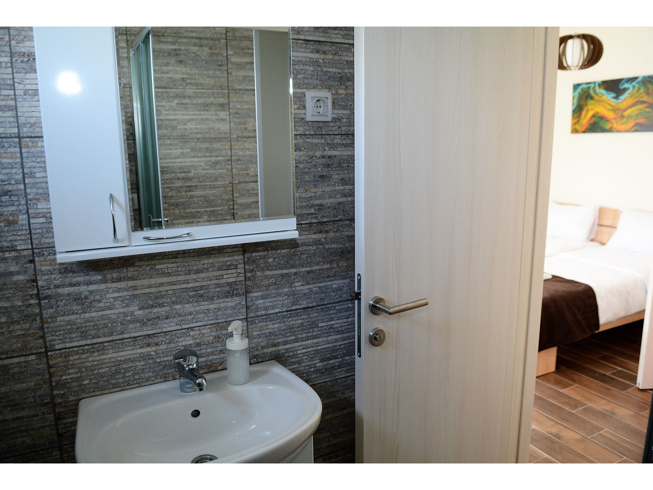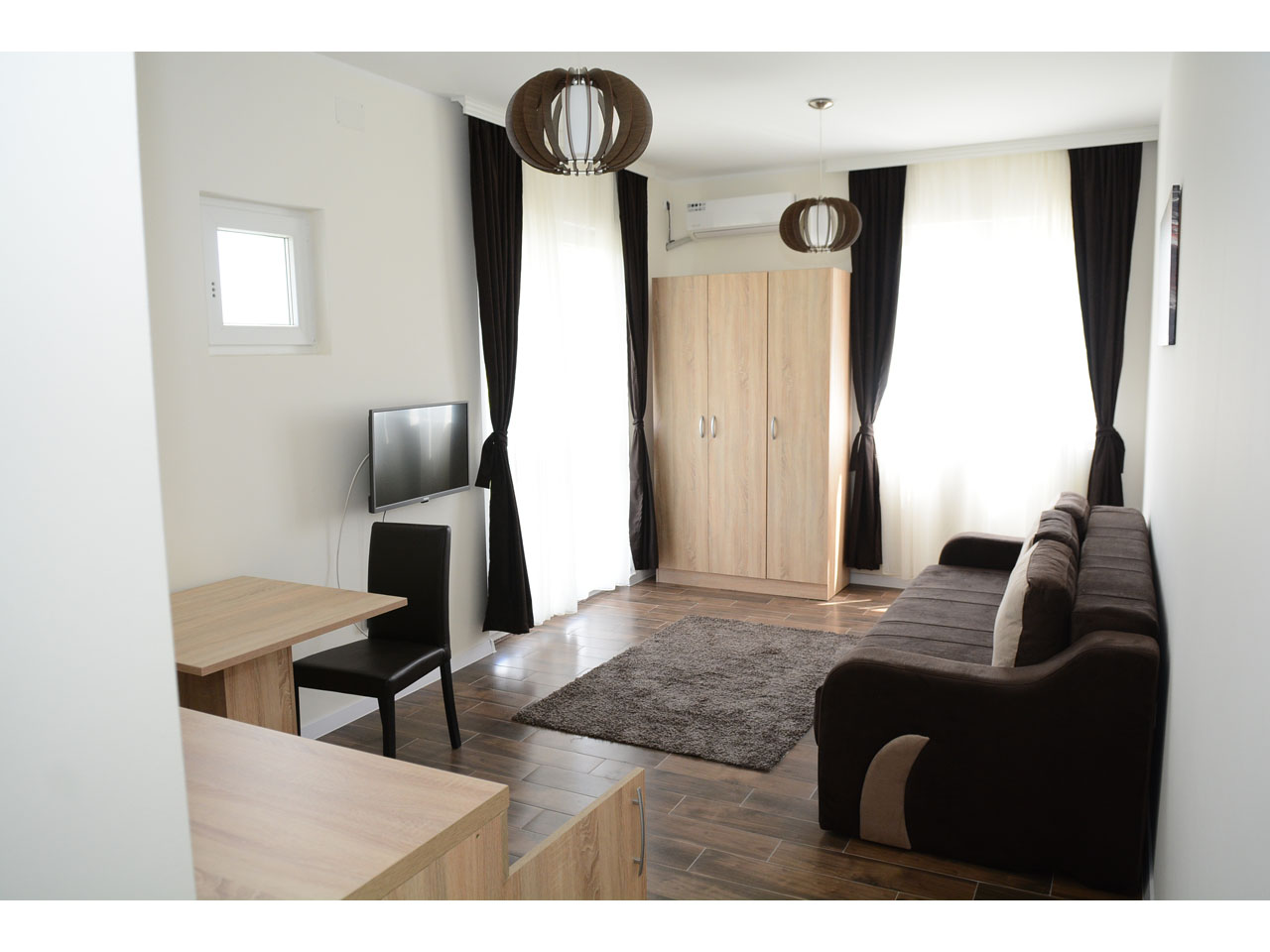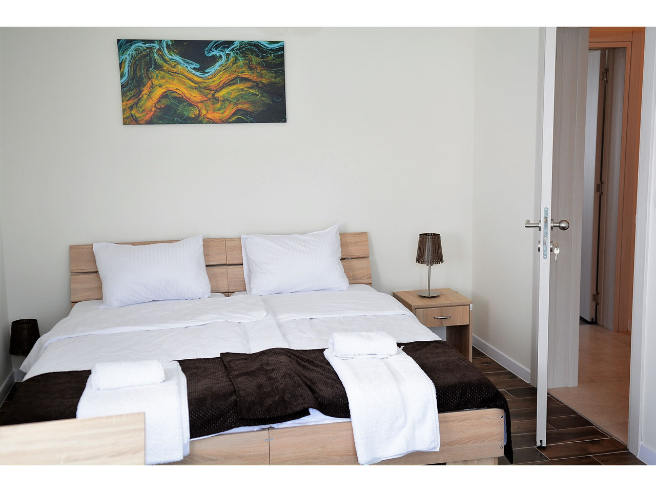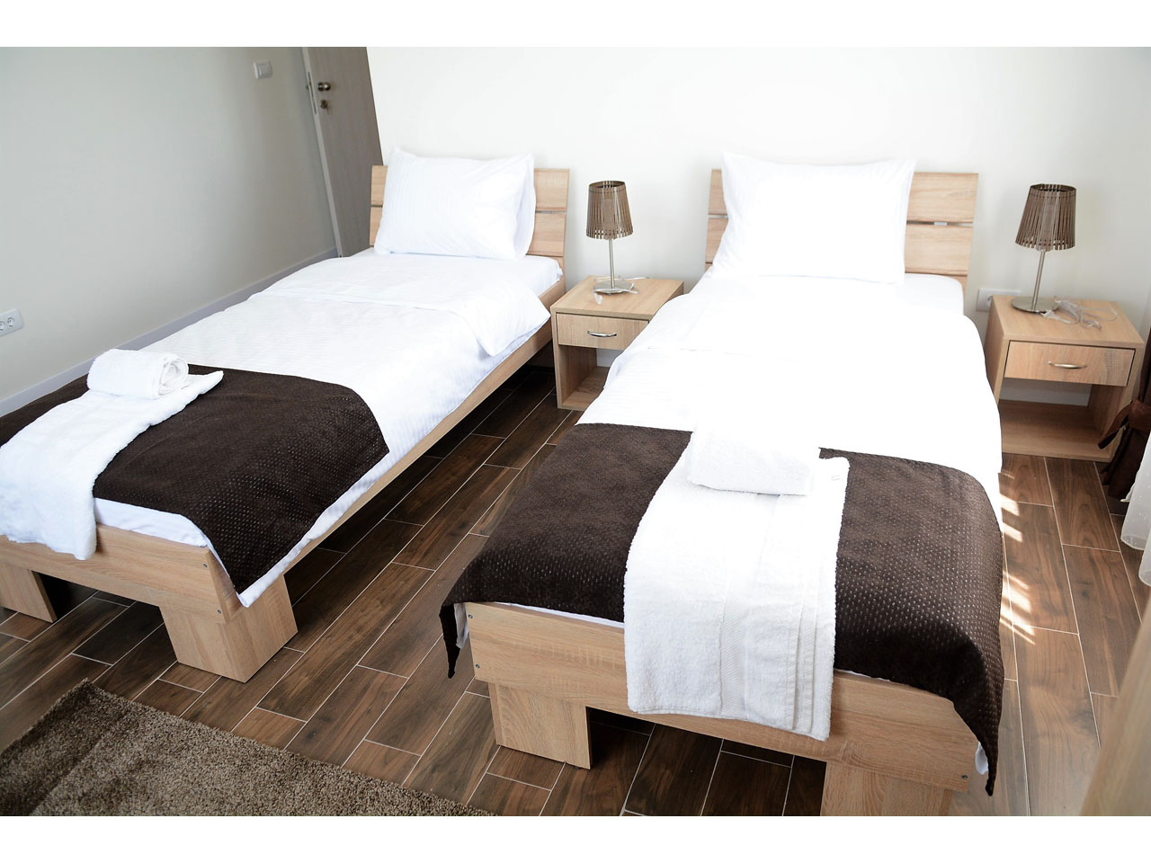 The rooms all have high-quality modern furniture, air-conditioning and cable TV. Free parking with video surveillance is available to all hotel guests. Reception is open non-stop and our kind and professional sky will be happy to help you. Breakfast in the form of a buffet is included in your overnight stay price.