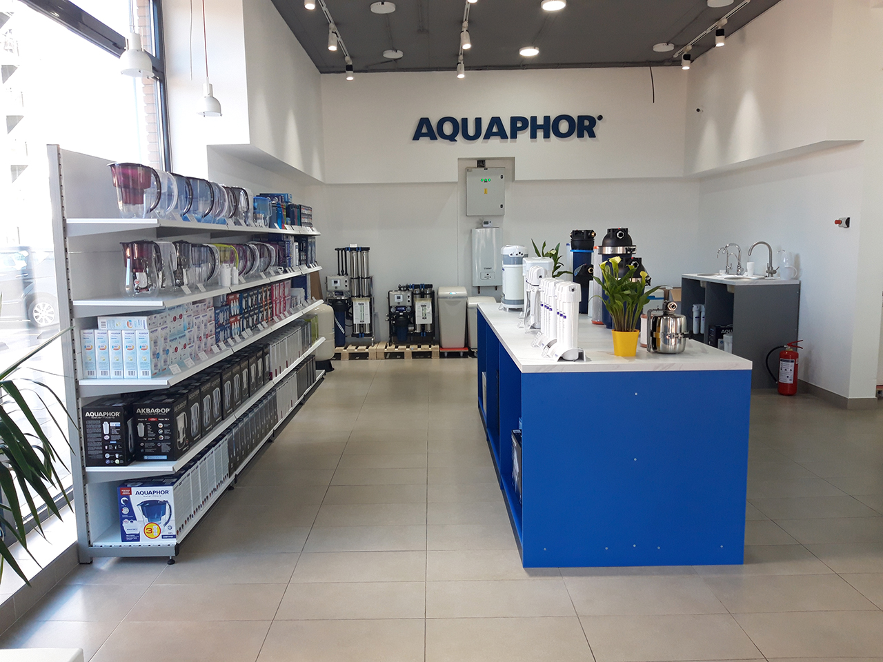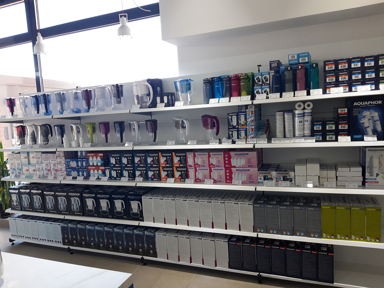 AQUAPHOR's range includes water purification pitchers, faucet-mounted filters, inline filters, reverse osmosis (RO), water softeners, UV lamps, dispensers, fountains with filters, built-in filters for industrial plants and households, and many other water filtration devices.