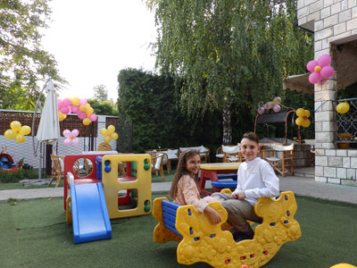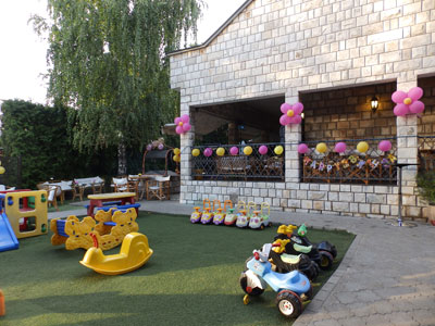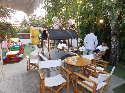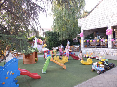 Spacious yard in a pleasant ambience with parking space. Our space is functional, equipped on two levels, air-conditioned and with video surveillance offers complete security. Your children can have fun with professional animators who lead the age-appropriate programmes, magicians, clowns, and all that while our staf cares for their safety.