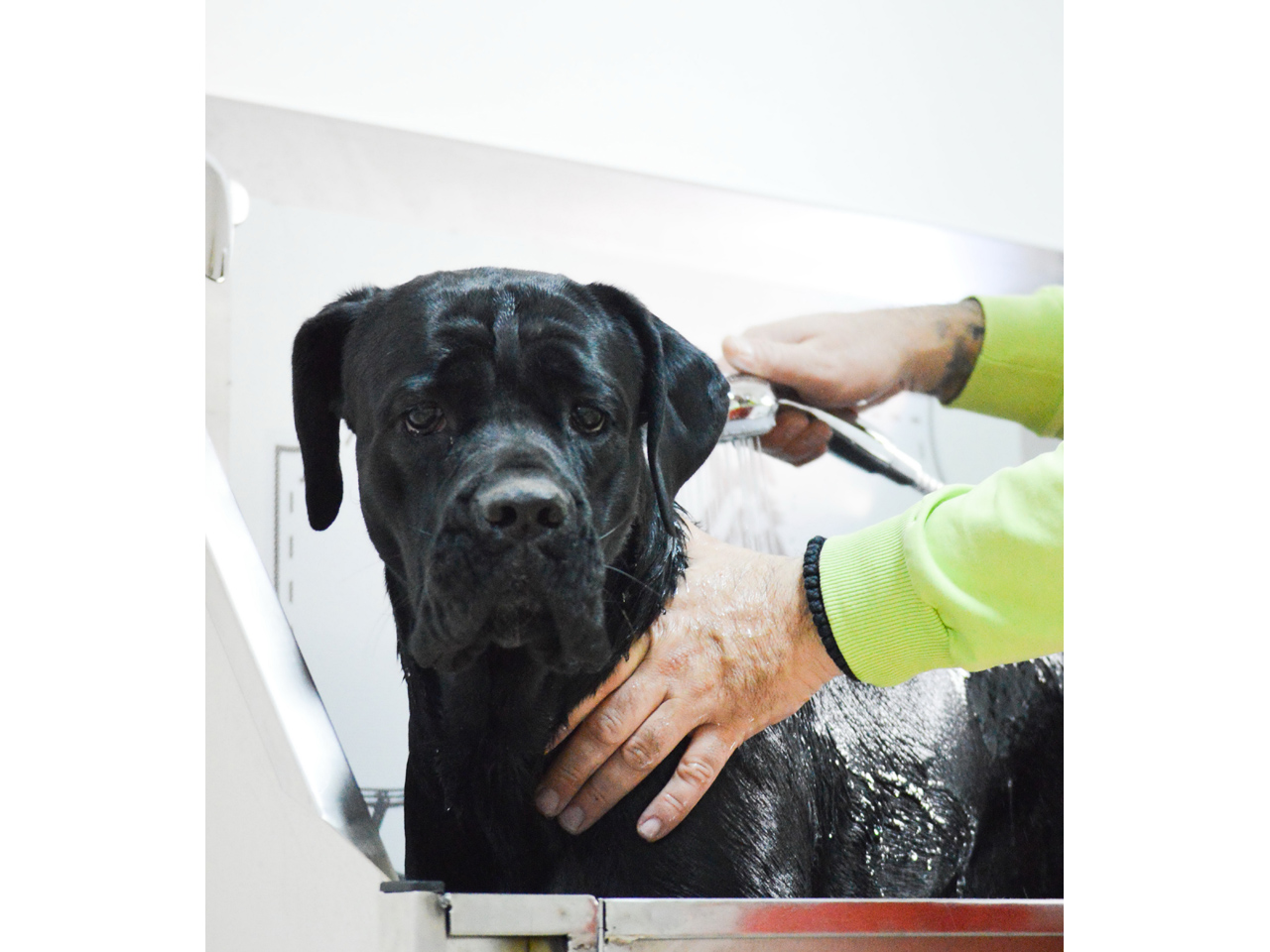 Dog bathing and grooming salon all breeds and sizes colors and coat length mood and temper.