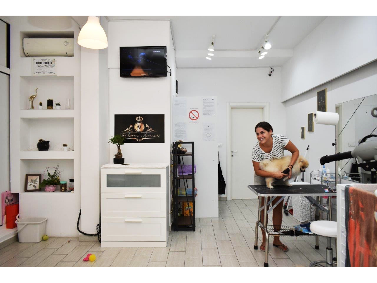 We are pleased to present our salon “The Queen’s Groomer” where your pets will get the royal treatment, the best care and lots of love and attention. The pleasant space ensures that your pets will feel good and we always do our best to make sure their visit with us is a pleasant experience with lots of play and cuddles. We are there to answer all of your questions and make your wishes come true.