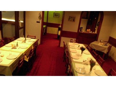 In our restaurant's pleasant ambience enjoy the most delicious national specialties prepared using the finest fresh ingredients. You can also have any kind of party here for up to 50 guests. A special part of our charm is our warm ambiance decorated in old-town style and dominated by oakwood.