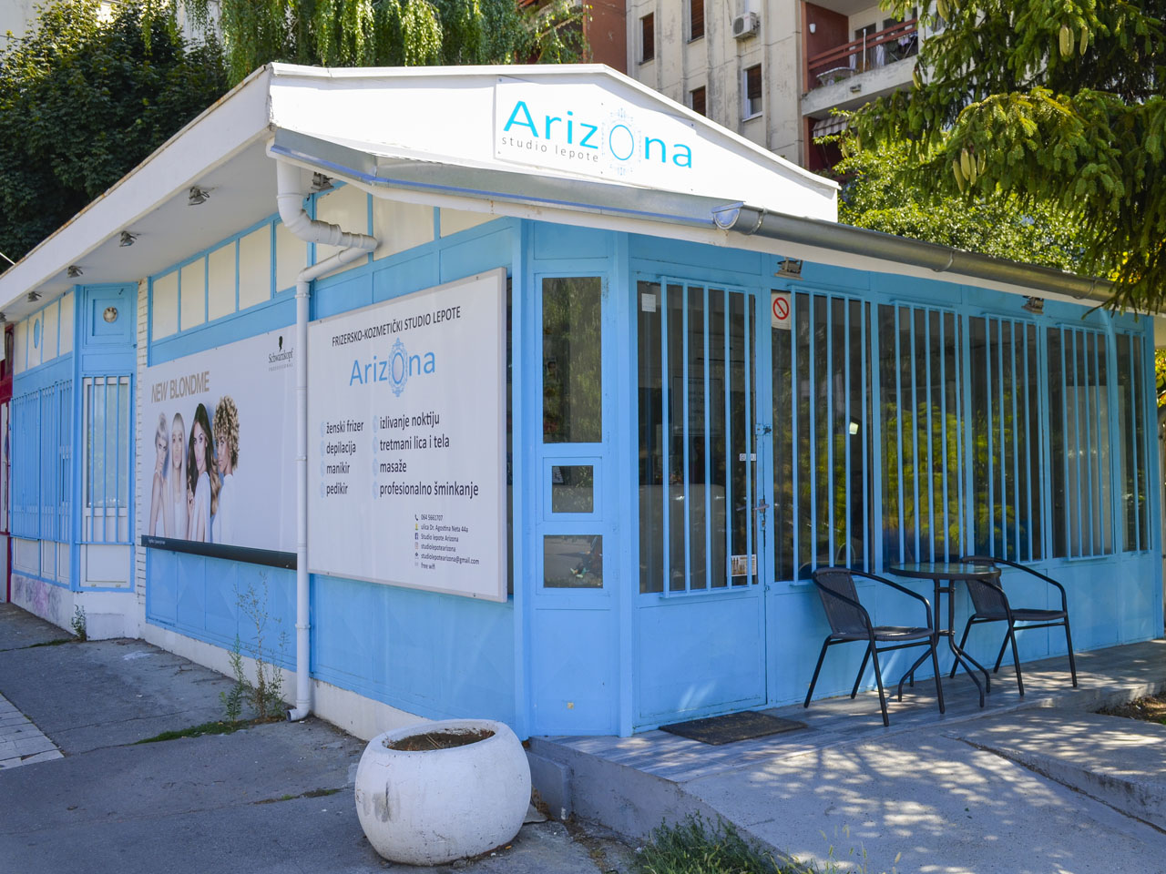 Studio Lepote Arizona se nalazi na Novom Beogradu, u ulici Dr.Agostina Neta 44a,u Bloku 70a.