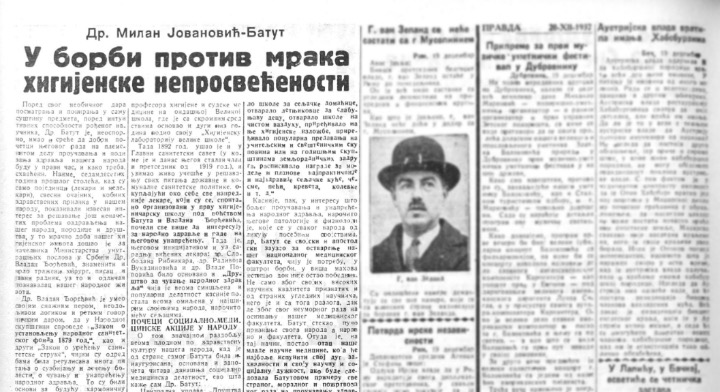 Najveći srpski medicinski prosvetitelj – Dositej Obradović srpske medicine – doktor Milan Jovanović Batut.