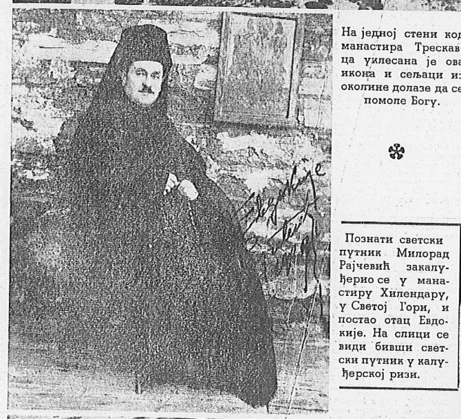 Na slici se potpisao kao Edvokije Rajčević. Ostavio je i adresu: Edvokije Rajčević, Hilandar, Mont Atos, Saloniki, Grčka!