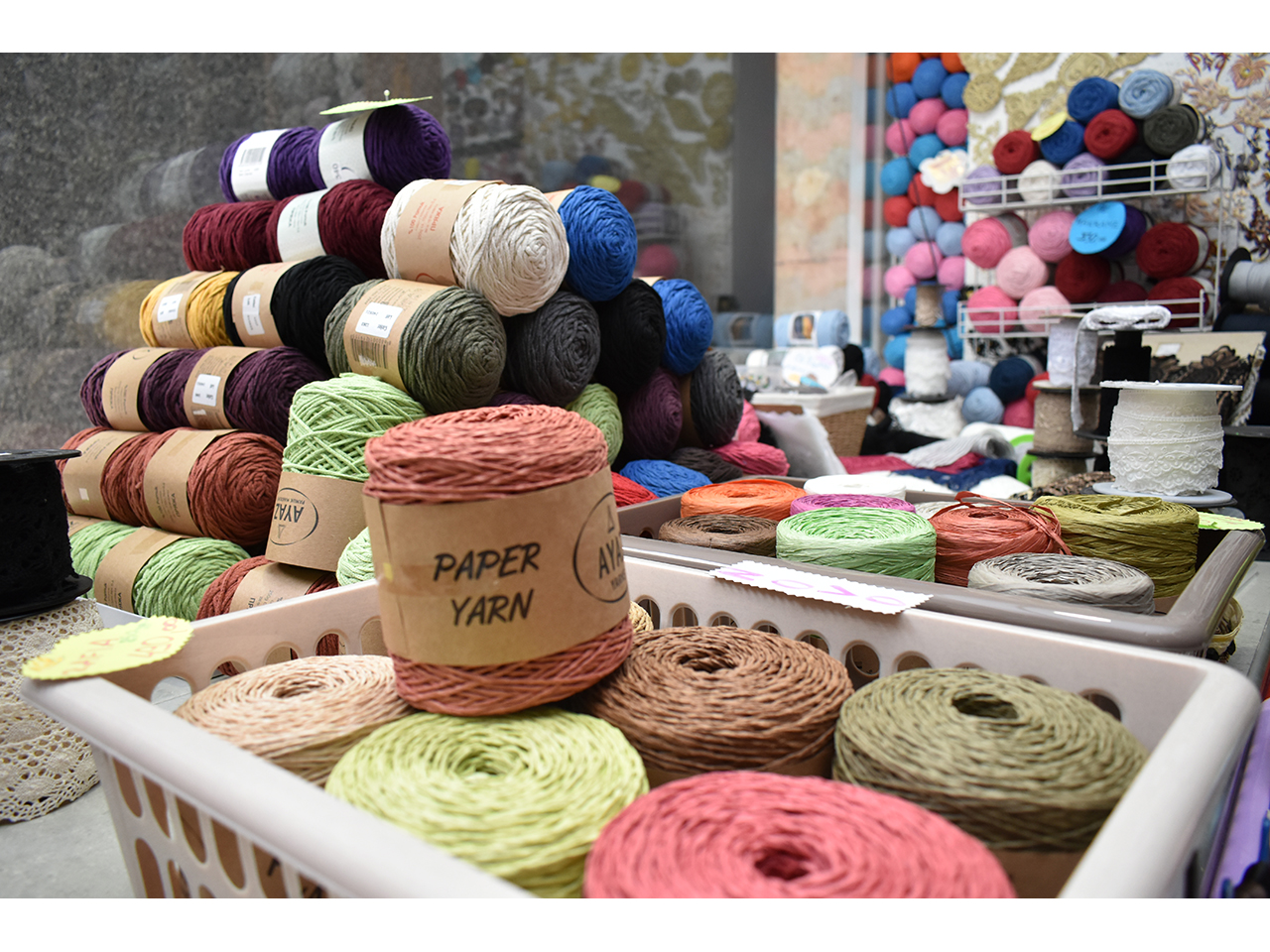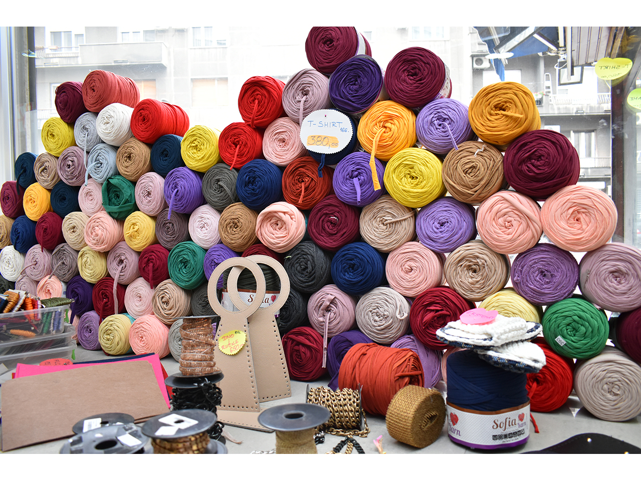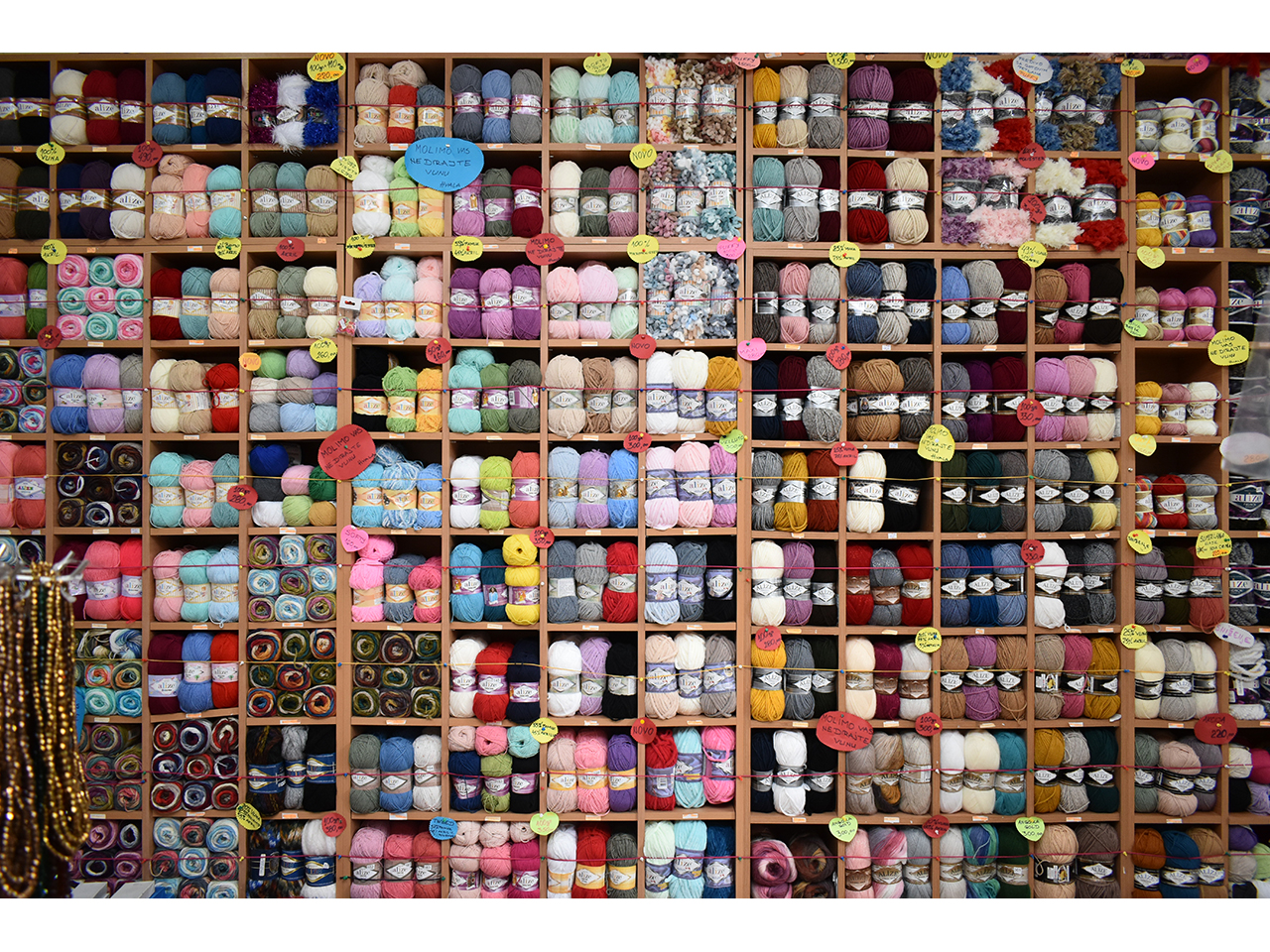 Čipka, vuna, kragne, igle, nitne, cirkoni, aplikacije, epolete, rips i saten trake, rese, konci, lastiš, broševi, kopče, krzna, rajsfešlusi, lepljivo platno, renderi, konci i igle za heklanje, modni lanci, perlice, učkuri, silikonske korpe za korsete, perje, šanel trake, cirkon trake za maturske haljine i venčanice, fišbajn i još mnogo toga po povoljnim cenama.