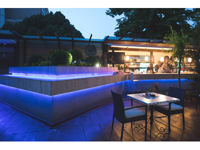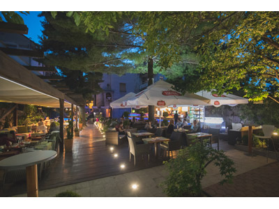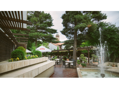 Ambijent prilagođen za vaše ugodne trenutke sa dragim ljudima ili pak ispijanje jutarnje kafice uz dnevnu štampu i časopise. Lepe i udobne garniture za sedenje- pod suncobranom, pod baldahinom, pod drvetom.. za svakog po nešto! A sve to uz prijatnu, laganu muziku i zvuk vode iz naših čarobnih fontana. Večeri uz, uvek romantičan, t...