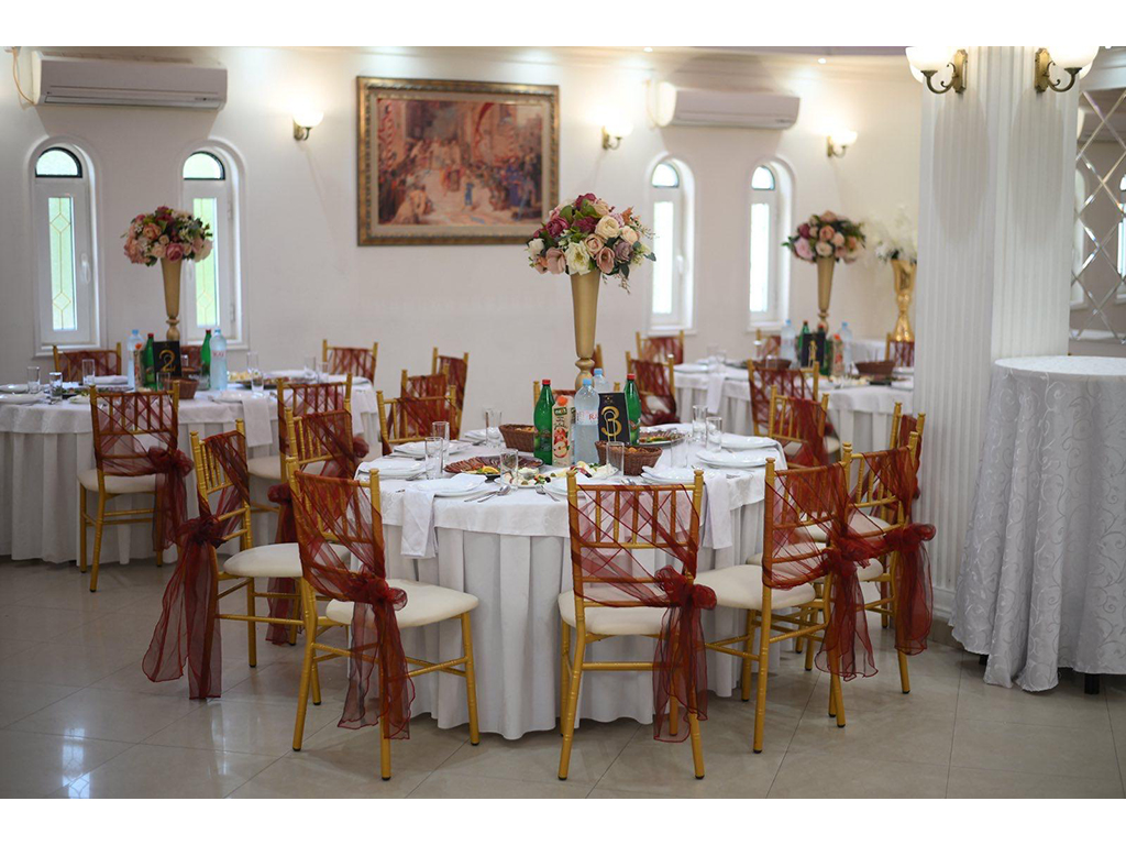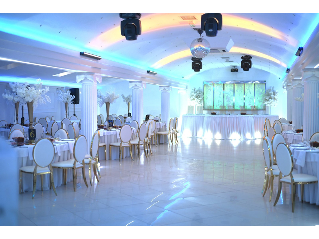 Банкетные залы "Гранд Херц" предлагают вместимость 200 и 350 гостей соответственно (БАНКЕТНЫЙ ЗАЛ GRAND HERTZ EXCLUSIVE). Расположение мест для сидения обеспечивает участие всех гостей в великолепном торжестве. Мы также предоставляем обширную парковку, оснащенную современной системой видеонаблюдения для вашего и наших гостей автомобилей. Кроме того, у нас есть более маленький банкетный зал на 150 гостей.