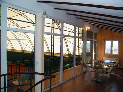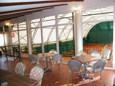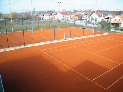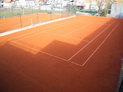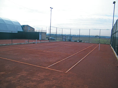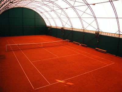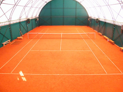 В наличии два открытых корта и два надувных зала.