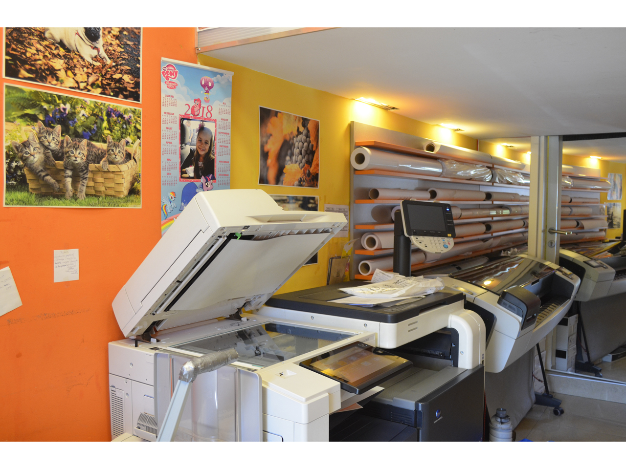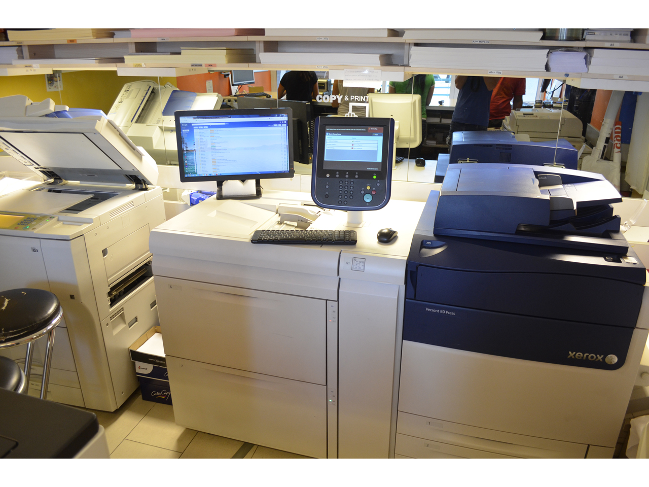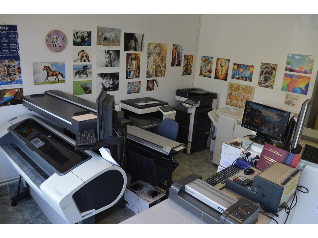 и другие услуги, такие как подготовка, копирование, печать, резка, сгибание, биговка, ламинирование, скрепление, создание визиток, флаеров, считывание личных карт и водительских удостоверений...