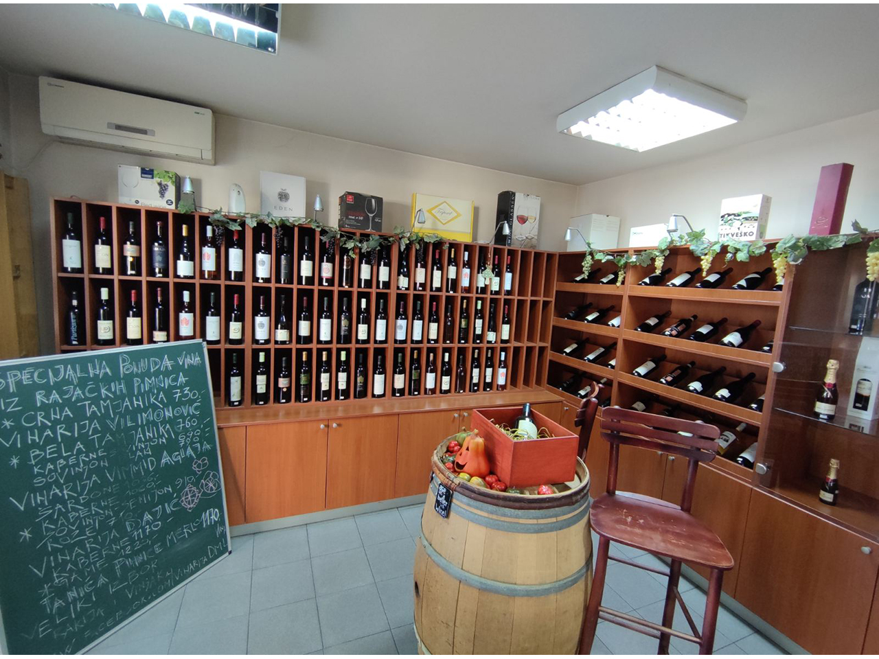 U prijatnom ambijentu naše vinoteke nudimo Vam oko stotinak etiketa probranih vina i rakija iz Srbije, kao i vina iz celog sveta. Ljubiteljima pre svega, dobrog vina, a takođe i ponajboljih rakija, kao i svima onima koji to tek treba da postanu omogućili smo da probaju vina najrazličitijih sorti, kako za poznavaoce istančanog ukusa, tako i za sve Vas koji bi da saznate nešto više o vinskoj kulturi i kulturi uživanja u vinima. Domaća i inostrana vina izložena na našim policama odlikuju se izuzetnim kvalitetom, o kom dovoljno govore pozitivne kritike naših cenjenih kupaca.